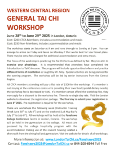 Western Central Region General Tai Chi Workshop Saturday June 28 to Sunday June 29 Information and Registration InstructionsRegistration Form (PDF)